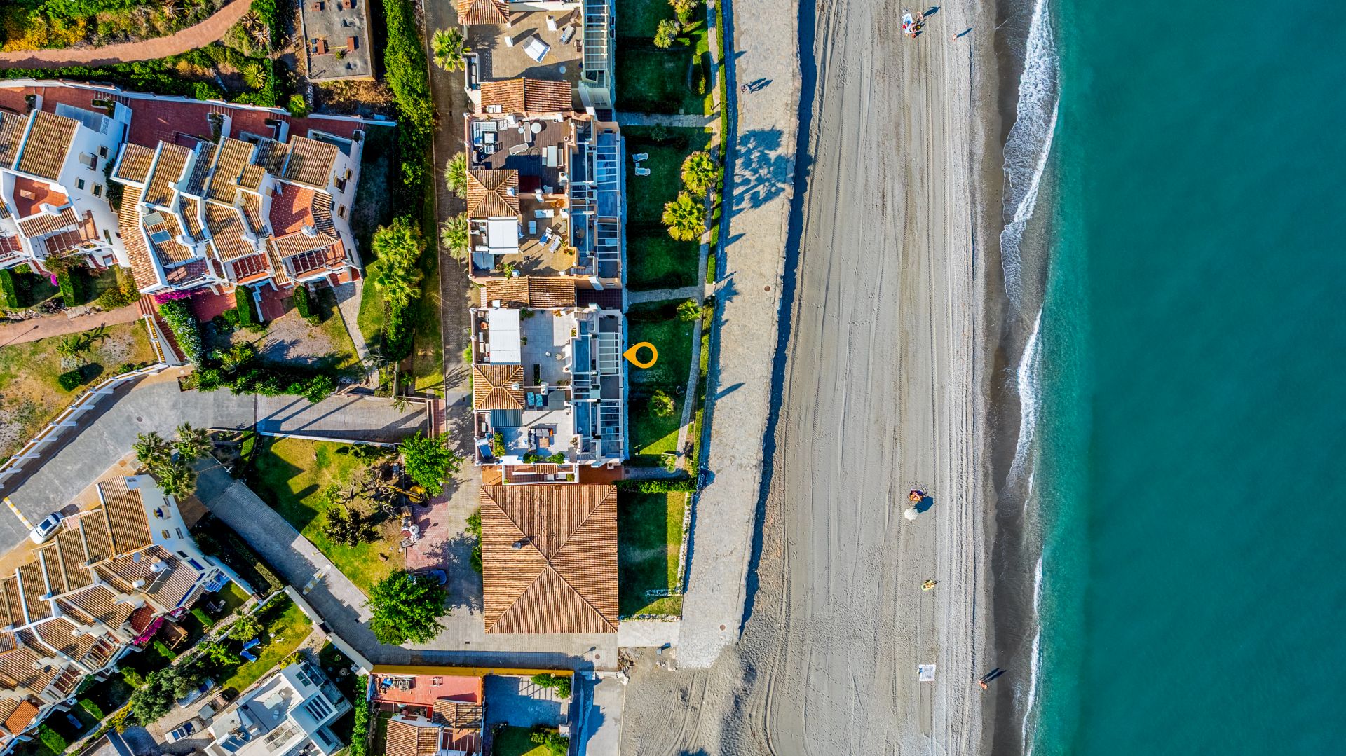 The complex itself features classic Andalusian architecture and a peaceful ambiance, with a large communal pool surrounded by lush greenery. Residents enjoy direct access to the beach and the seaside promenade, perfect for leisurely strolls and outdoor activities.