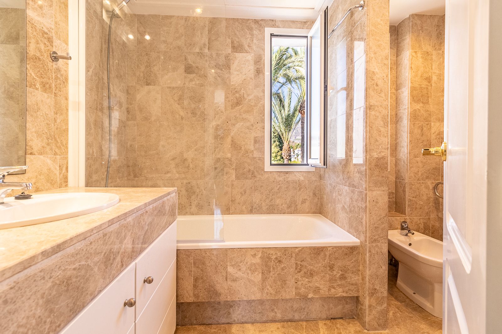 The property is situated within a secure, gated community with beautiful, well-established gardens and a large communal swimming pool. Its location is simply unbeatable: just a few meters from schools, supermarkets, cafés, prestigious golf courses, and transport links. Furthermore, it is only a 5-minute drive from the luxury of Puerto Banús and its beaches.