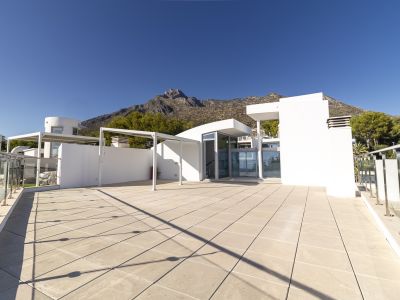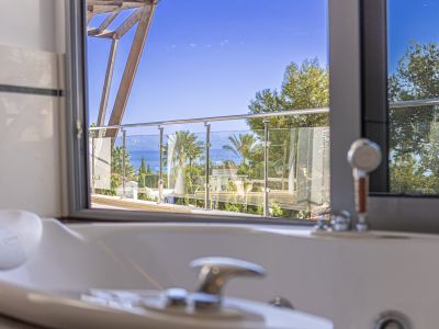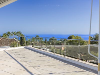 This semi-detached villa of 877 m² combines avant-garde design with spectacular views of the Mediterranean Sea and La Concha Mountain, enjoying exceptional natural light throughout the day. Located in one of the most desirable areas of Marbella, within the prestigious Sierra Blanca community on the Golden Mile, it is surrounded by high-end properties and just minutes from Puerto Banús, Marbella’s Old Town, the beaches, international schools, and all the services offered by Marbella