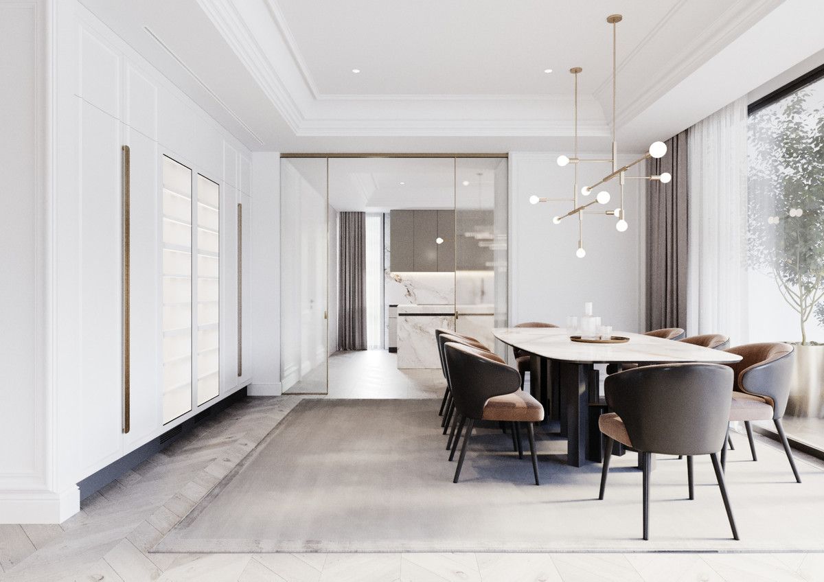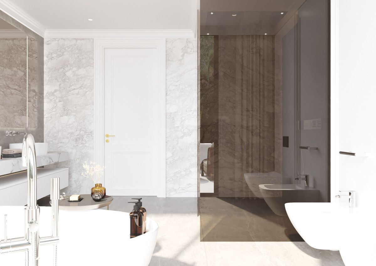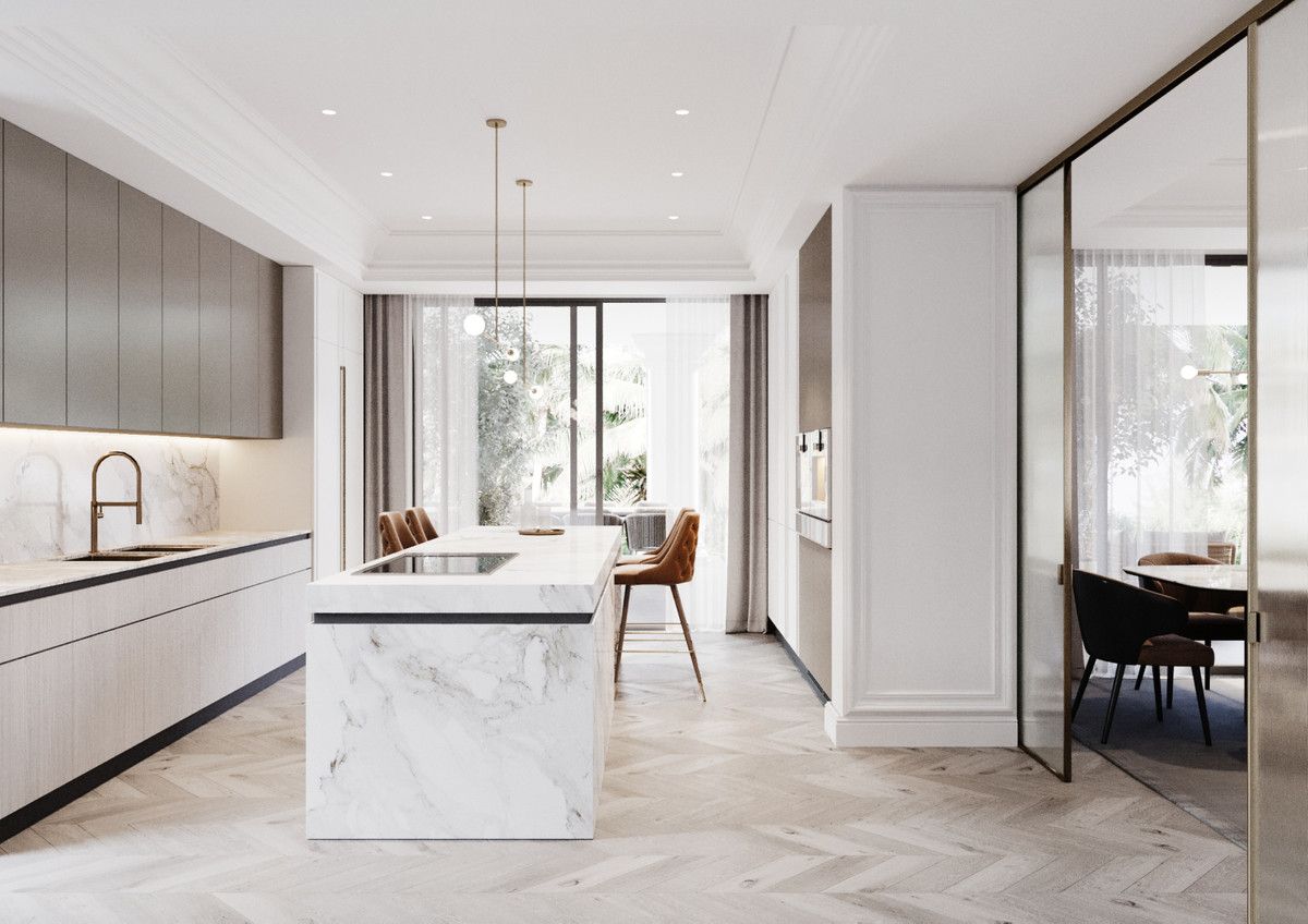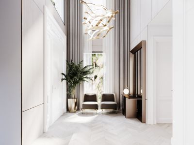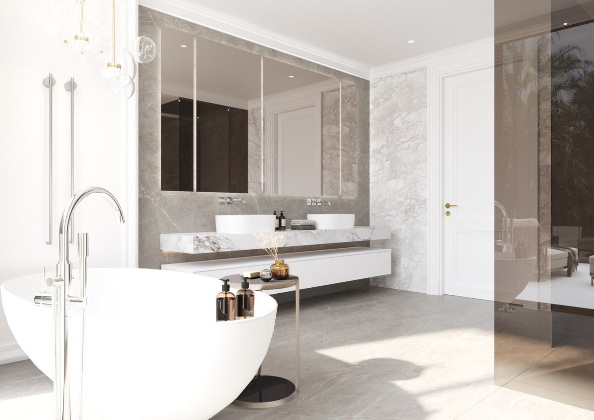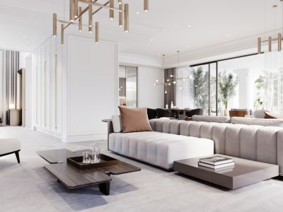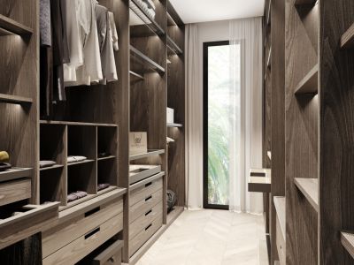 This sophisticated set of only 4 independent villas is located in a prestigious urbanization on the Golden Mile – Lomas de Marbella Club. Known as one of the most popular luxury residential areas in Marbella, it is located opposite the Roman Bridge and close to the Royal Mosque. These villas are characterized by their beauty, elegance and comfort. All facing south and with a classic and modern appearance, with superior qualities throughout. Each villa has an elevated position which, together with its orientation, offers beautiful views of both the Mediterranean Sea and La Concha Mountain. The villa is well proportioned in layout, spread over 3 levels and a solarium to create an exquisitely tasteful 5 bedroom residence with multiple entertaining areas. Access to the villa is impressive thanks to its double height ceiling and large contemporary pillars. The heated saltwater pool has a covered and an open terrace and an elegant hammock area that invites you to enjoy the beautiful Marbella climate with family and friends throughout the year. Upstairs the master bedroom offers privileged access to the large terrace with a spectacular view of the pool and the sea below. In addition to the entertaining areas in the garden, the spacious upper solarium has enough space for an outdoor gym with glass curtains, as well as more fabulous indoor and outdoor lounge areas.